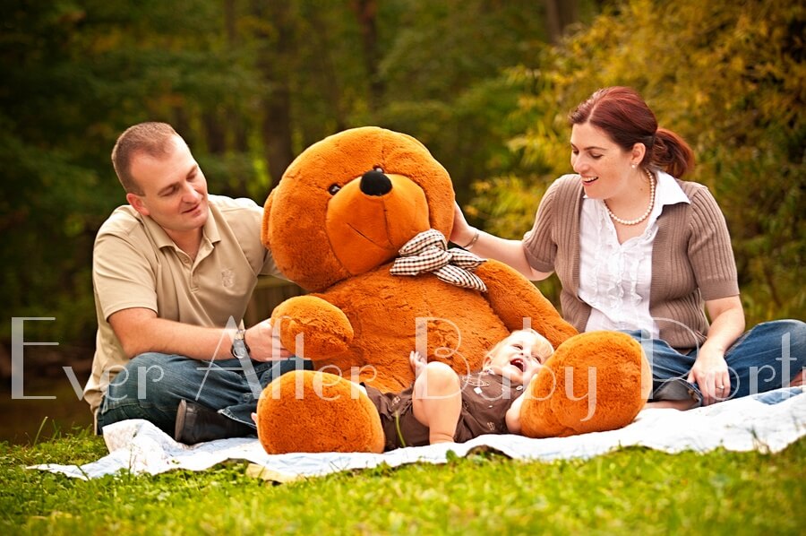 The adventures of one year old Alistair and his best buddy The Bear made for a fun outdoor portrait session. Relaxing on a blanket in our spacious 2 acre outdoor studio, Ilse and Seth played with their adorable son as he enjoyed his gigantic teddy bear. Playing hide and seek, wrestling and getting a hug from The Bear made Little Alistair laugh and smile all afternoon.
