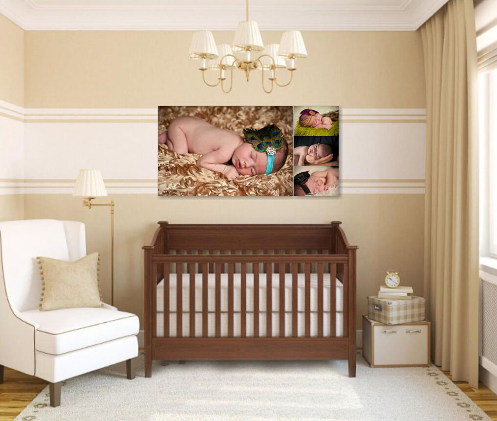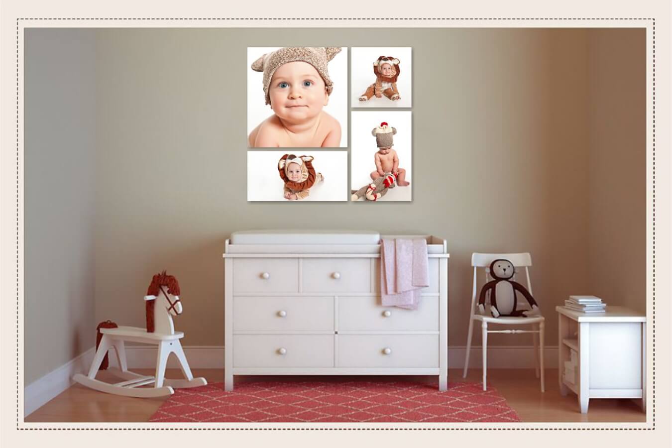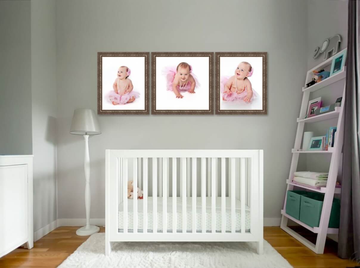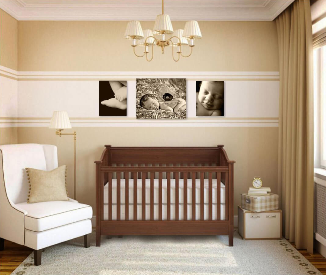Sometimes a neutral room just calls for a Sepia Wall Art Collection. Warmer than black and white, sepia images are often loved due to the softer, more neutral tones. The above collection suits this nursery very well, designed for the space and size.