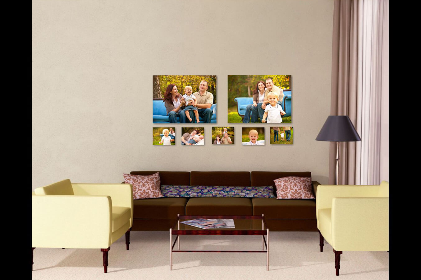Whether your living room is traditional or modern, outdoor baby wall art images are a terrific place to display them! This collection is of a portrait session featuring an adorable baby boy with his parents. Notice how beautifully the images compliment the modern furniture in this room. This collection takes advantage of the wall space over the low couch. Having art of your family displayed is a way to tell your special story. It shows how much the people you love mean to you.
