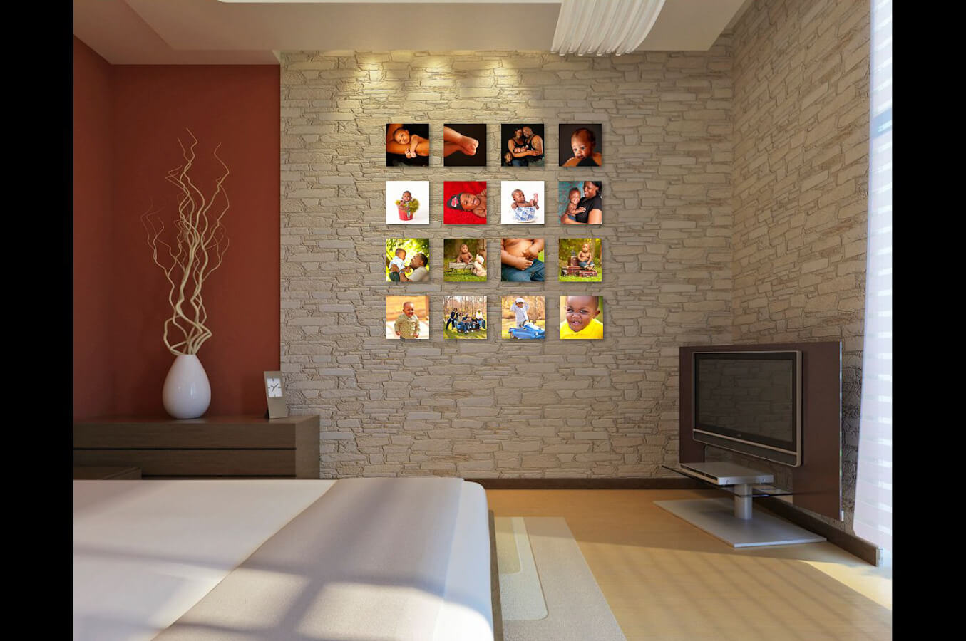 This baby wall collection for the bedroom captures smiling and energetic Tres from newborn to one year old. The wall art includes not only mom and dad but a heartwarming multigenerational photo. These images are precious memories that every parent can reflect on and share over their lifetime. Also a fantastic way to document your family tree.