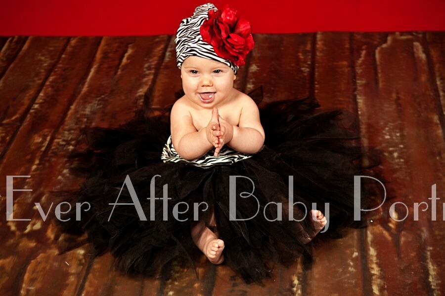 Eight month old as prima ballerina playing patty cake int this fun portrait.