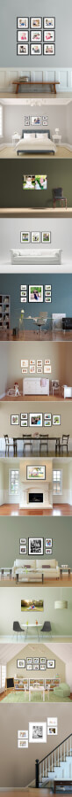 Wall gallery collections are different than a single large, framed image over the fireplace in one important way: They give the opportunity to tell a story, create a narrative, and reach beyond a single image. When any set of images are displayed together, the viewer immediately tries to draw connections between them, making the total greater than the sum of its parts.