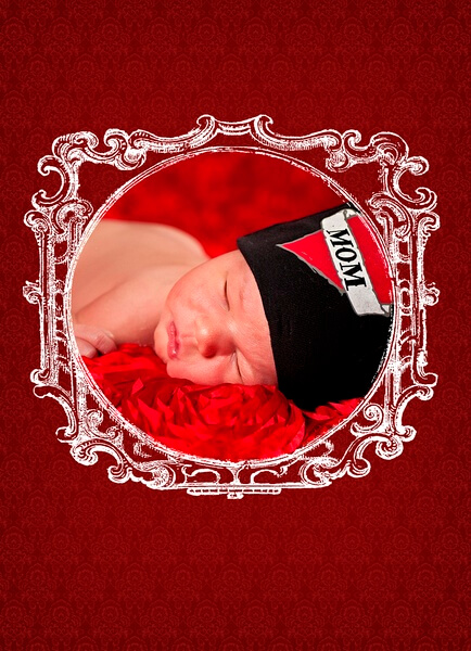 Custom Birth Announcements are a wonderful way to share your news with friends and family. Julie and Chris announced Gavin’s birth with just such a custom-designed announcement, choosing a red background to match the “Mom” hat!